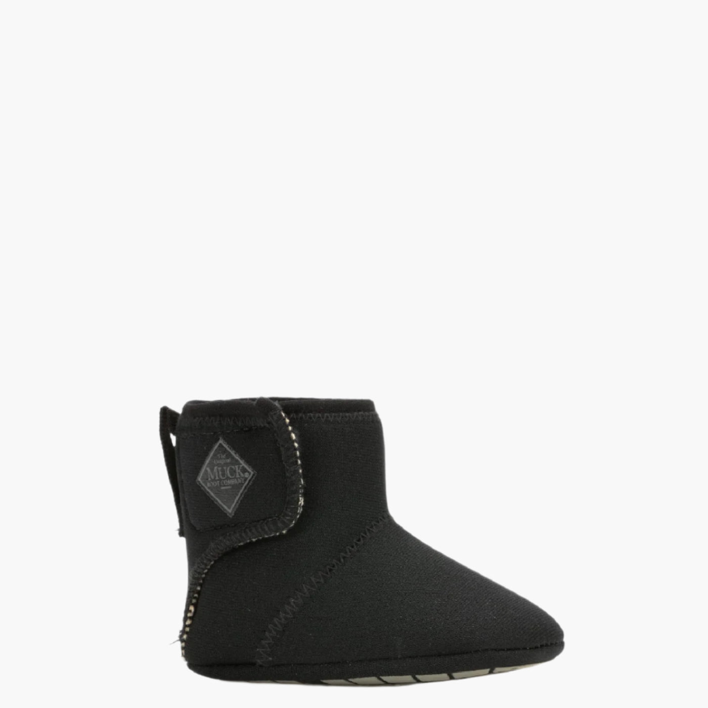 Putting booties on a baby has never been easier with My First Mucks. New Velcro construction allows the soft neoprene bootie to wrap around little feet. instead of trying to maneuver them through the shaft and into the toe.
